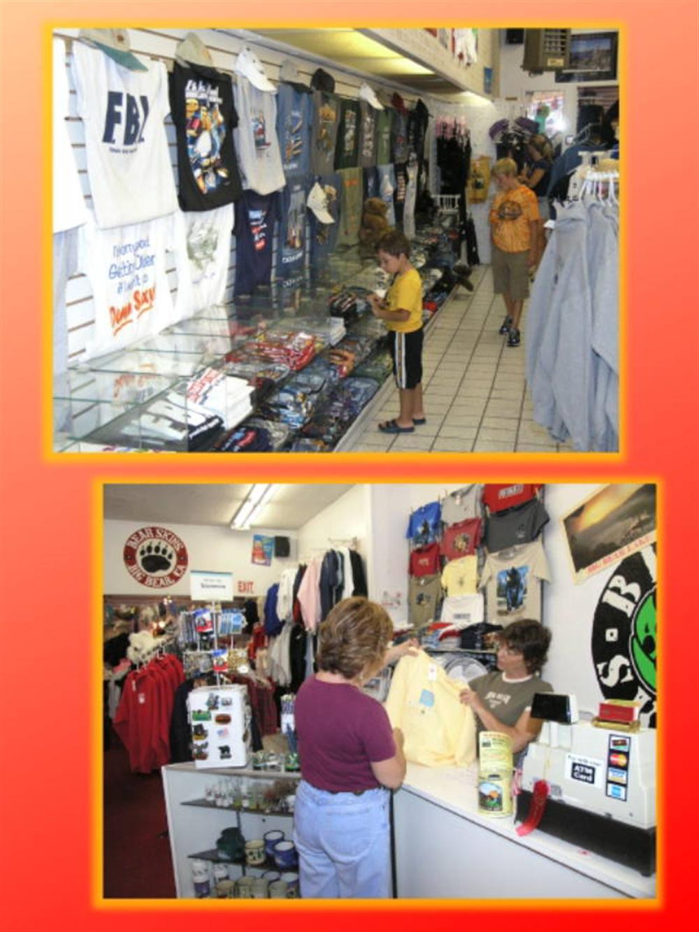 If you’re looking for a souvenir for friends or family, you are sure to find the perfect gift from the wide selection of items. Bear Skins carries name brands such as, I Can Too, LA Imprints, Joe Blow Tees, For Bare Feet and many more. Open from 10am to 6pm daily during the winter (summertime until 8) and late on weekends,