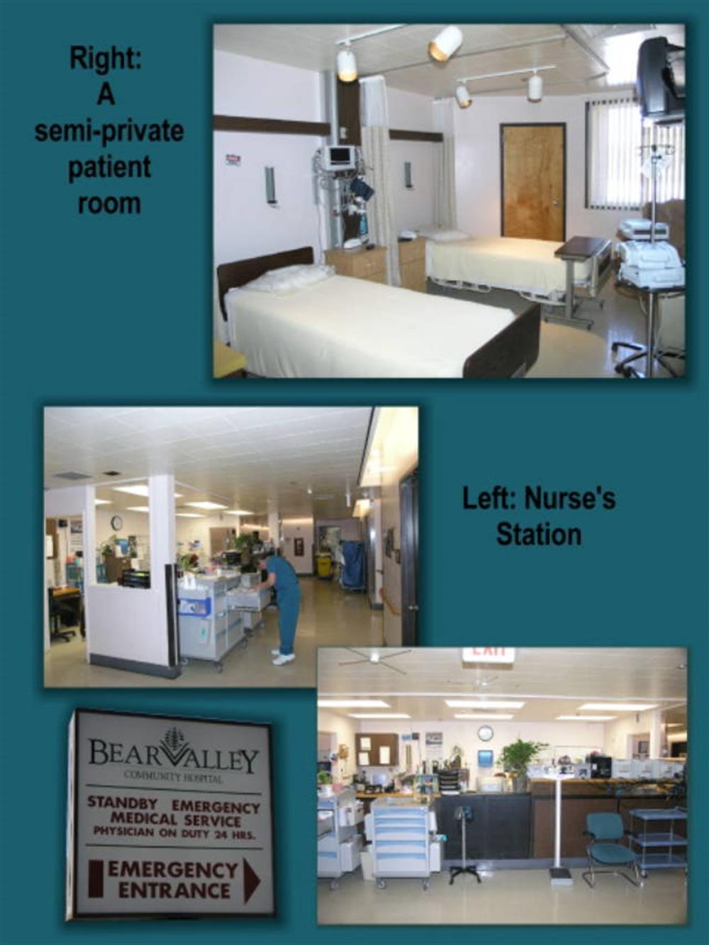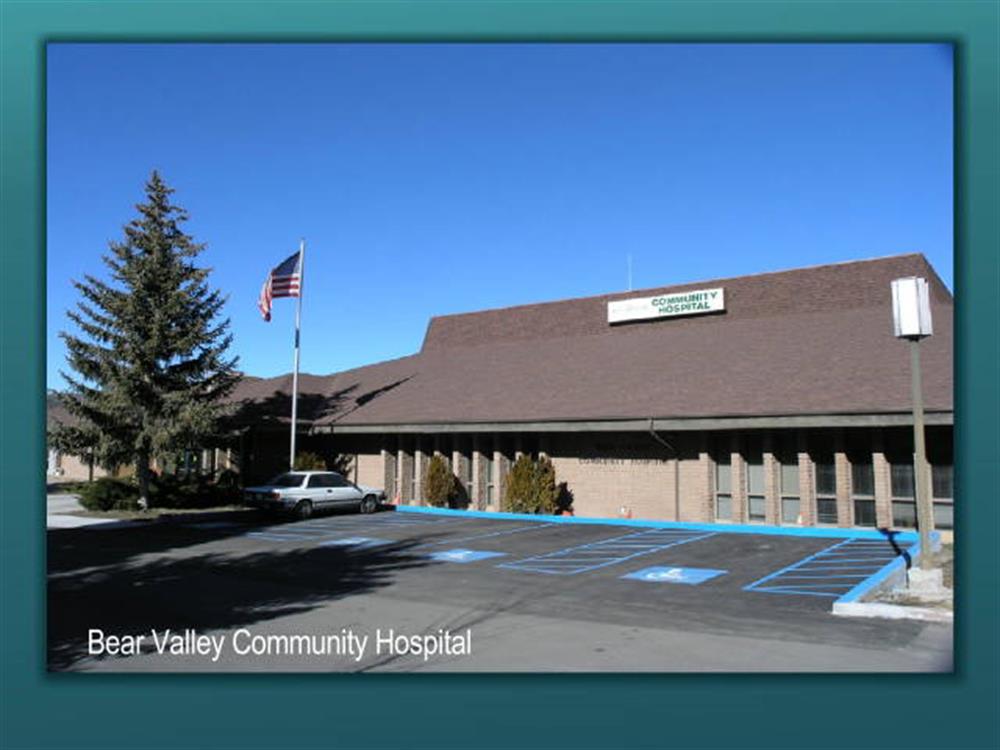The Bear Valley Community Healthcare District has services that meet the medical needs of the valley residents. Bear Valley Community Hospital is a hospital with highly qualified physicians, nurses and technical staff that are ready to assist you with quality patient care and a dedication to patient satisfaction.