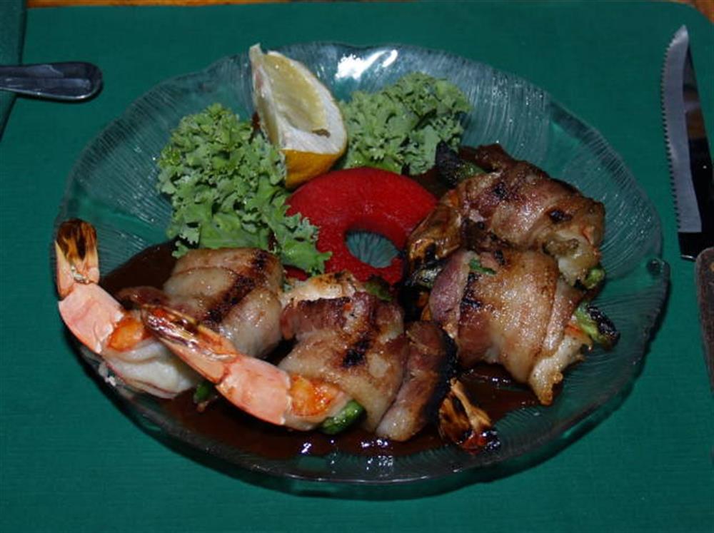 Through the years the Captains Anchorage has become a favorite restaurant because of superb dinner choices such as The Anchor, a charbroiled Filet Mignon stuffed with Dungeness Crab, topped with artichoke hearts and fresh tomato, smothered in béarnaise sauce. Steak lovers may select other succulent steak dinners that include the Top Sirloin, Teriyaki Top Sirloin, and New York steak. The Market Place offers Alaskan King Crab Legs, Lobster, Wild Salmon and Broiled Swordfish. There is a variety of other excellent dinners with seafood and chicken.
