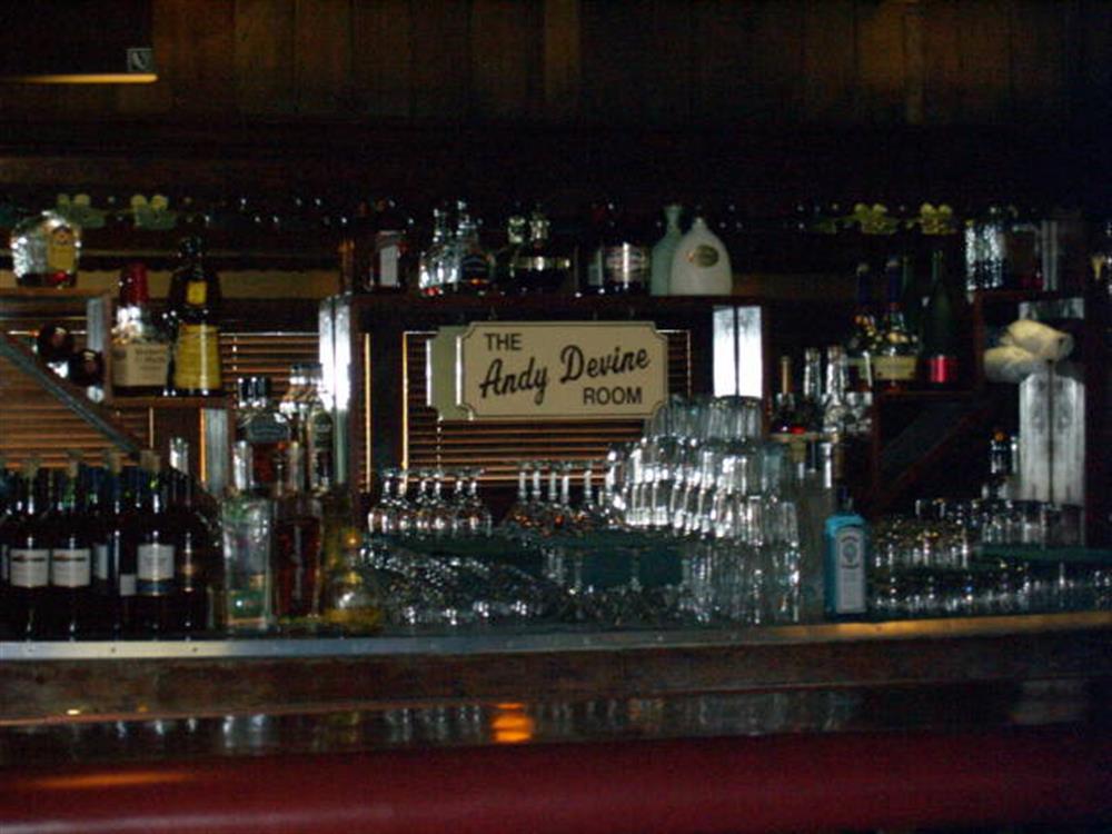 The restaurant, once owned by cowboy actor Andy Devine, famed for his role as Jingles in the Wild Bill Hickok TV series, is a popular hang-out for many local residents. Downstairs is the legendary Andy Devine Room with the classic full-bar serving delicious mixed drinks, beer, wine and liqueurs. Some regulars like to select from the Bar Sandwich Menu, a popular choice being the Prime Rib Sandwich. Perhaps you'll start the evening out with a Steamed Artichoke or another of the awesome appetizers. The Salad Bar has sizzling soups and fresh veggies where you can make up your own salad combo.