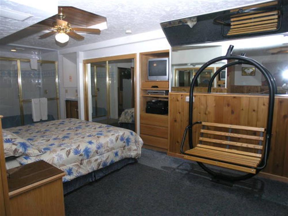 The romantic honeymoon cabins have 110 gallon Jacuzzis, (one with a waterfall) CD players, TV and VCR. The lodge features newly decorated, individual one, two & three bedroom cabins with kitchens, fireplaces, TV & barbecues. Guests can also enjoy the horseshoe pits, ping-pong tables, picnic tables and beautiful swings.