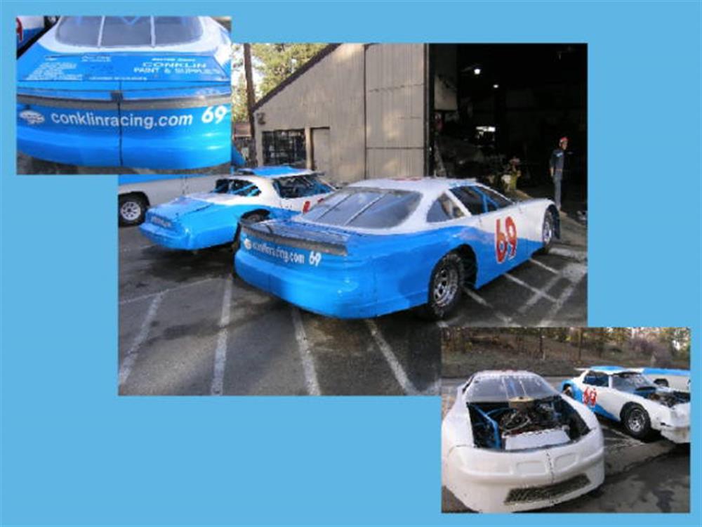 Jim Conklin’s lifetime experience began at a young age with hot rod cars as a hobby that developed his professional skills for painting and repairing racecars. Take note of the display with Jim’s trophies from the auto-racing world. There is the 1998 NASCAR Points Championship in a ’76 Monte Carlo Jim was awarded at the Orange Speedway Car Show. Other track records include the 2001 Grand Prix in the Late Model Class.