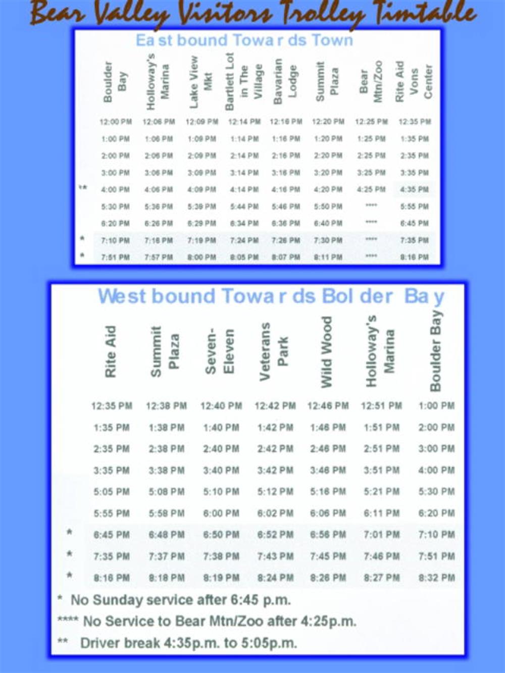 Sit back and enjoy a bit of old-time nostalgia as you ride the newest addition to Marta’s fleet, the Big Bear Trolley. See the sights along Big Bear Boulevard as you travel to the Bear Mountain Ski Resort, Snow Summit Ski Resort, Alpine Slide, Moonridge Zoo, and The Village in Big Bear Lake
